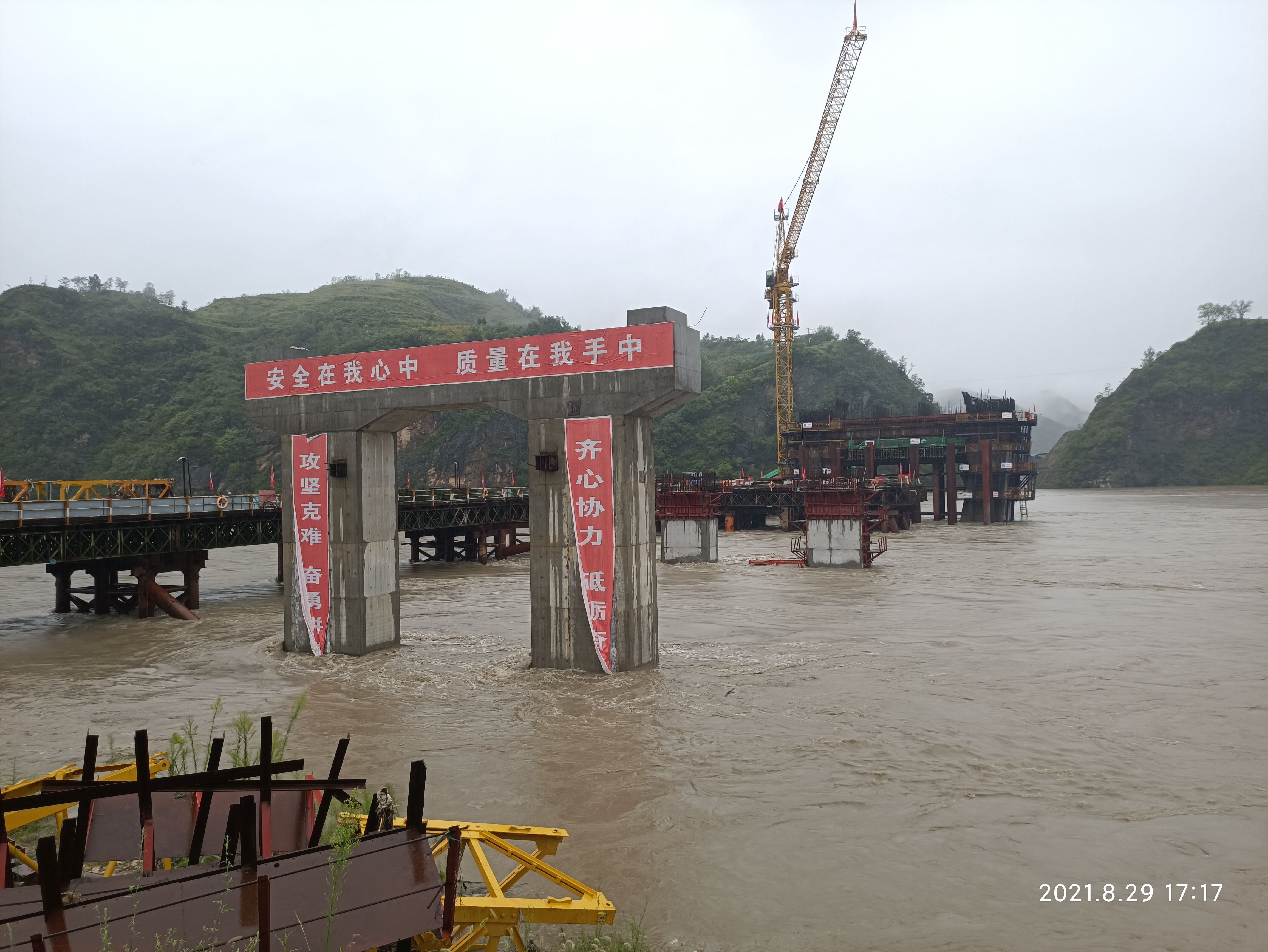 8月28至29日,郧西PPP项目施工区域内的安家五龙河测站、马安本站、观音天河口测站等气象站点24小时降雨量超115毫米,同时,受陕西安康、白河、旬阳等客水叠加影响,洪水水位已漫过天河口汉江大桥围堰3.6米,项目整体进入防汛抗洪三级响应状态,形势十分严峻。