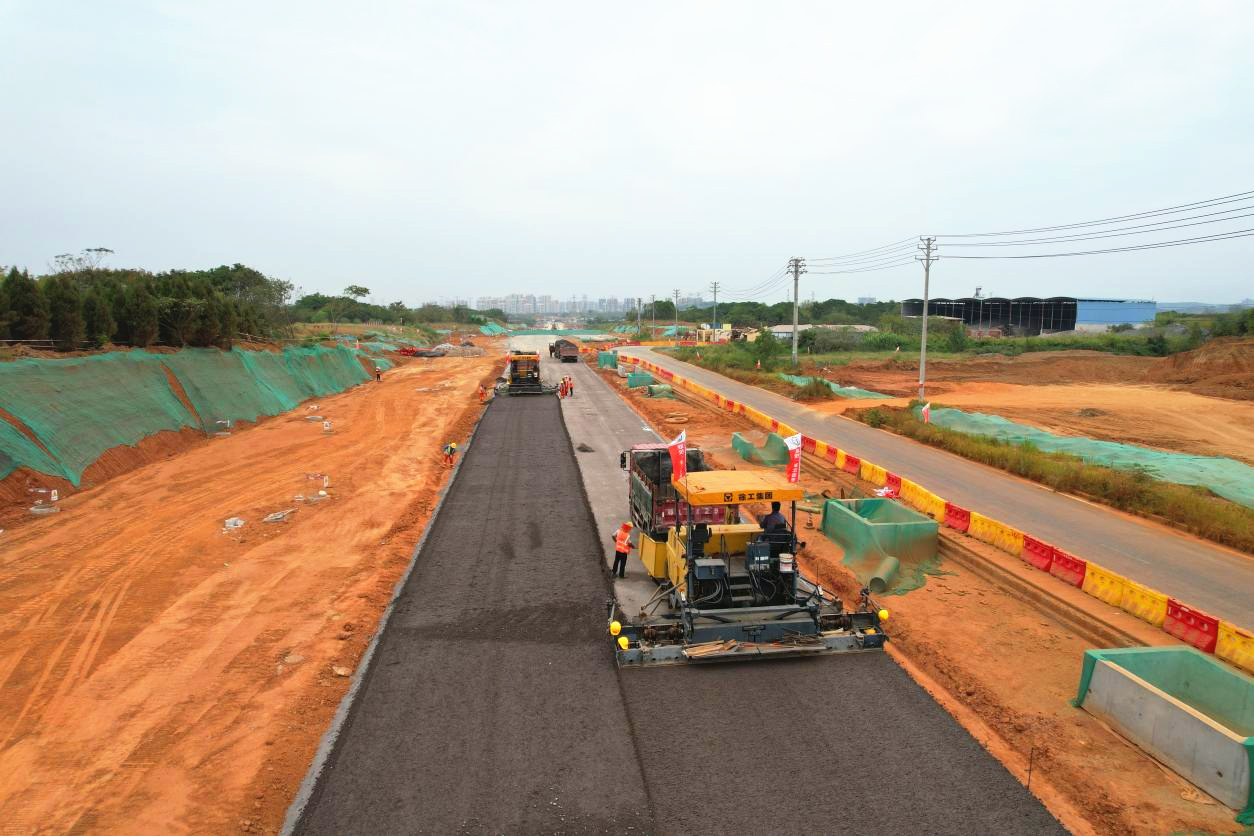 9月,中法生态城项目顺利完成琴音路及赏琴北路水稳摊铺,为项目全面建成奠定了基础。