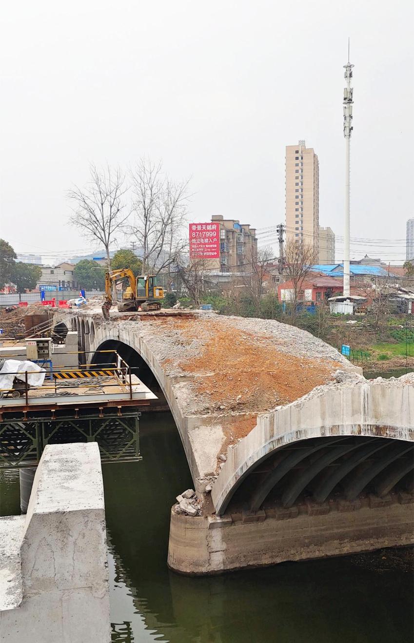 4月,汉川项目七一桥改建工程老桥顺利拆除完成,标志着七一桥左幅桥梁施工正式启动,大桥改建工程将进入全段面施工阶段。大桥拆除过程中,项目部全力克服困难,积极组织,严格把控,从事前探测老桥结构、编制完备方案到事中进行多次现场交底,专人值守轮流带班参与桥梁拆除全过程。