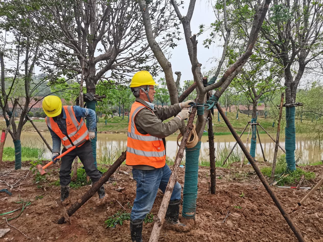 4月25日,花山项目安屿那园路地面铺贴、植被栽种等景观绿化工程有序推进,4月份项目累计完成乔木种植198株,地被苗木栽植3200㎡,园路铺装1600㎡。计划到5月底,完成项目二批次范围内乔木栽植和园建结构施工,确保项目达到绿化竣工备案验收要求。
